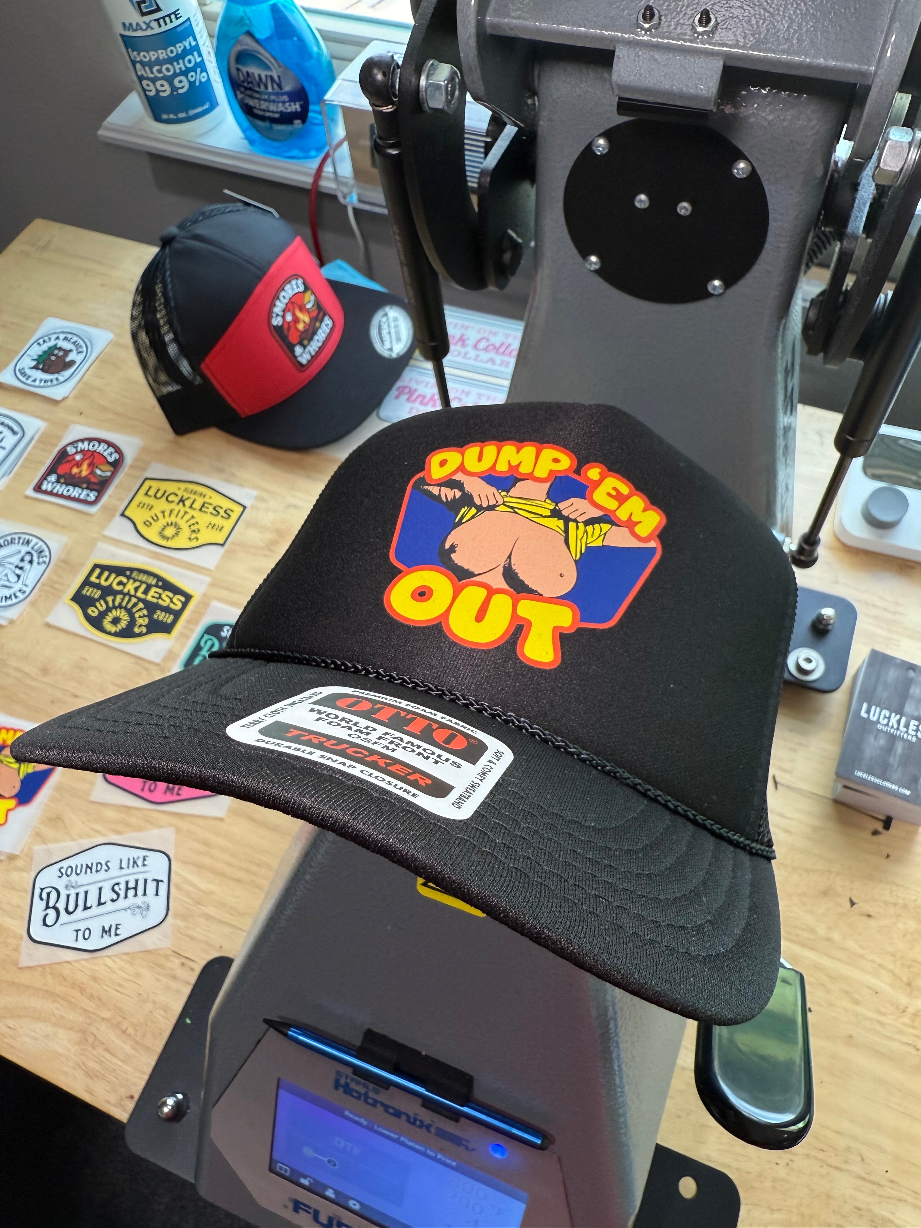 Vibrant, heat-pressed graphic with bold “Dump ‘Em Out” text