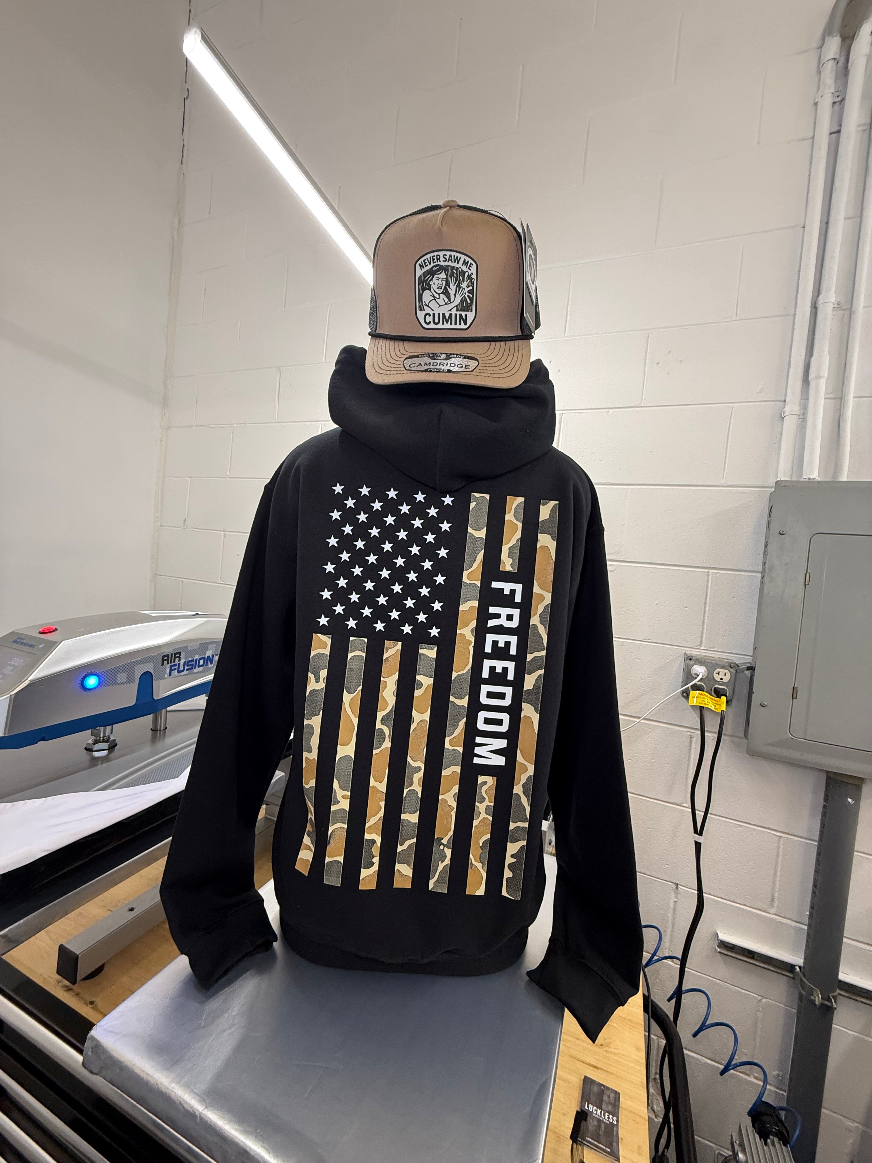 At Luckless Outfitters, we like our freedom loud, our hoodies comfortable, and our opinions clearly visible from at least fifty feet away. Enter the Freedom Flag | Desert Tan Hoodie, the perfect blend of patriotism, attitude, and everyday wearability.
